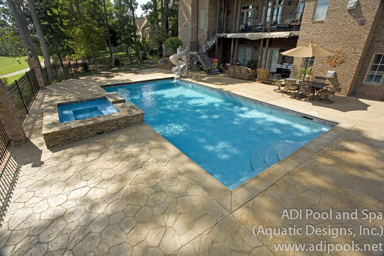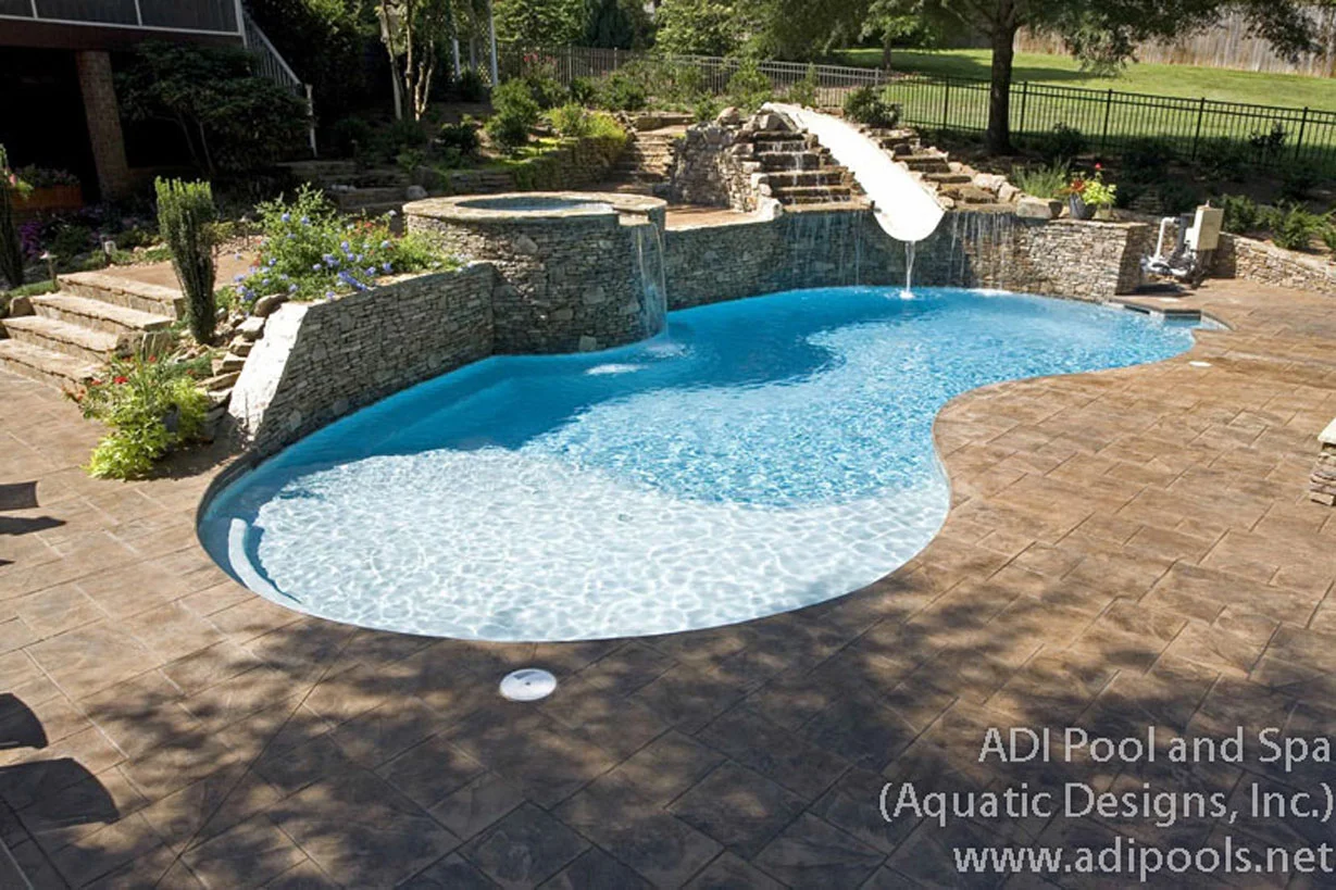 Residential pools come in all shapes and sizes. When looking for the perfect backyard swimming pool, it is important to pick a company that has the design skills and experience to transform your yard into your private vacation spot. ADI can build a swimming pool that is specific to your lifestyle. Get that endless look with a vanishing edge, incorporate a thermal ledge, beach entry, a slide, a grotto. Create movement with bubblers, a waterfall, fountain or spillway. ADI Pool and Spa specializes in constructing quality in-ground swimming pools that are elegant AND functional. Add a spa or hot tub to soothe your tired muscles. Make it personal! Make it yours!